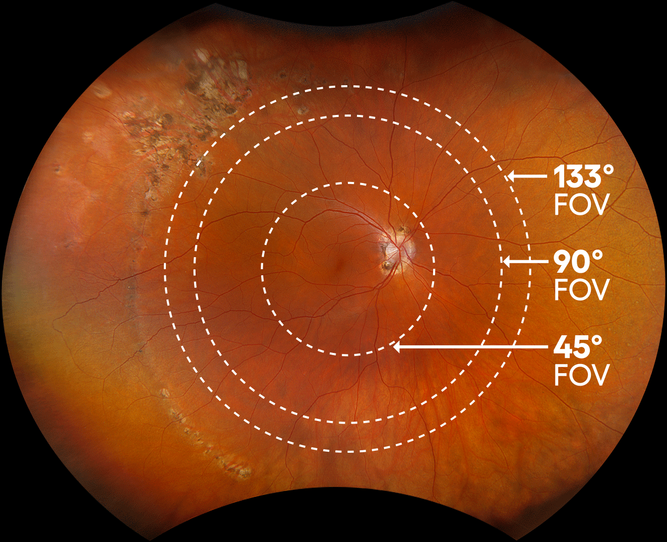 Das EINZIGE 200°-Ultra-Weitwinkel-Bild der Netzhaut mit nur einer Aufnahme