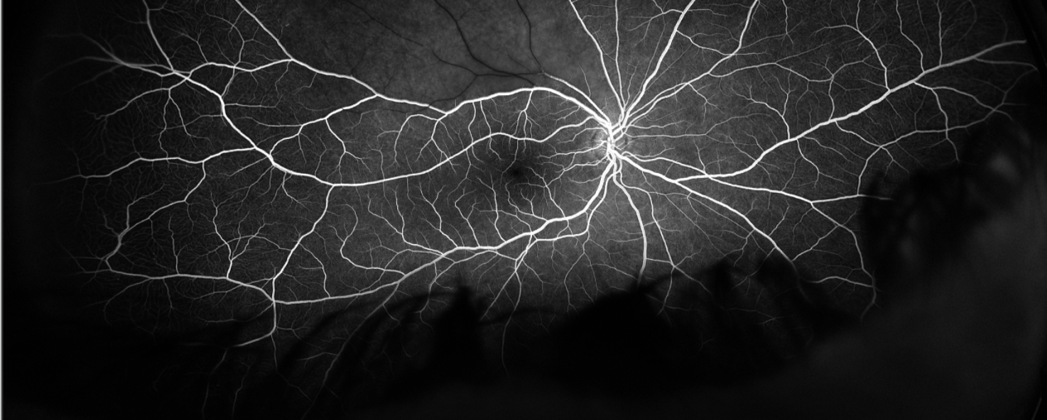 Abbildung 3: Arterienastverschluss des rechten Auges in der Fluoreszenzangiographie