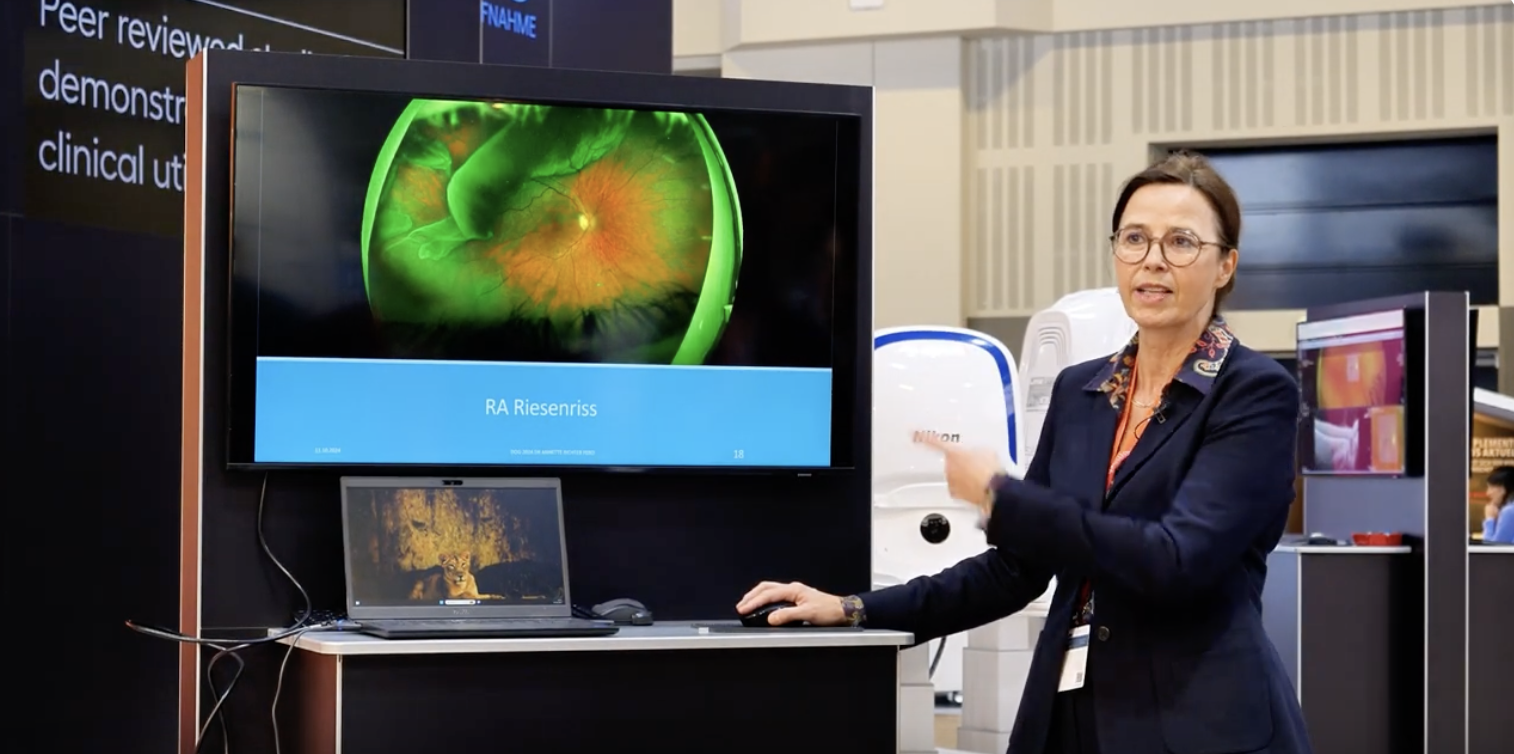 In ihrer eindrucksvollen Präsentation auf der DOG 2024 teilt Dr. Annette Richter, wie die Ultra-Weitwinkel-Bildgebungstechnologie hat ihre Einzelpraxis in Deutschland revolutioniert Von der Erkennung peripherer Netzhautpathologien in schwierigen Fällen bis hin zur internationalen Zusammenarbeit über Cloud-basierte Lösungen veranschaulicht Dr. Richter die transformative Wirkung dieser fortschrittlichen Technologie auf Arbeitsabläufe, Diagnostik und Patientenversorgung.